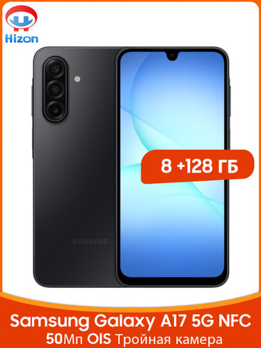 Samsung Смартфон Samsung Galaxy A17 5G NFC Емкая батарея 5000 мАч 50Мп OIS Тройная основная камера 6,7 дюйма 90Гц AMOLED Экран Лучшая водозащита IP54 8/128 ГБ, черный