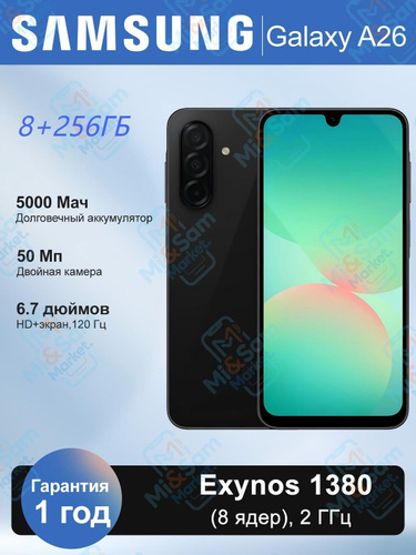 Samsung Смартфон Galaxy A26 -НОВЫЙ- Global 8/256 ГБ, черный