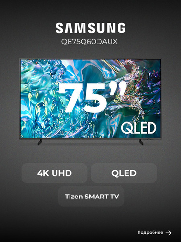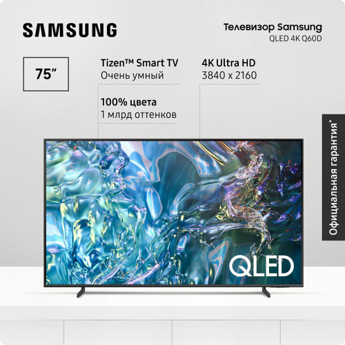 Samsung Телевизор QE75Q60DAUXRU, 100% цветовой объем, масштабирование до 4К, ОС Tizen, дизайн AirSlim 75" 4K UHD, серый