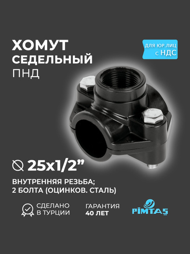 Хомут 32 х 1/2" седельный ПНД (врезка в трубу/седелка), 2 болта, PIMTAS (Пимташ)