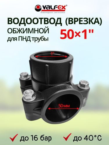 Врезка водоотвод для ПНД трубы 50х1" VALFEX