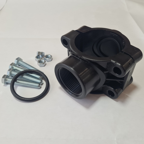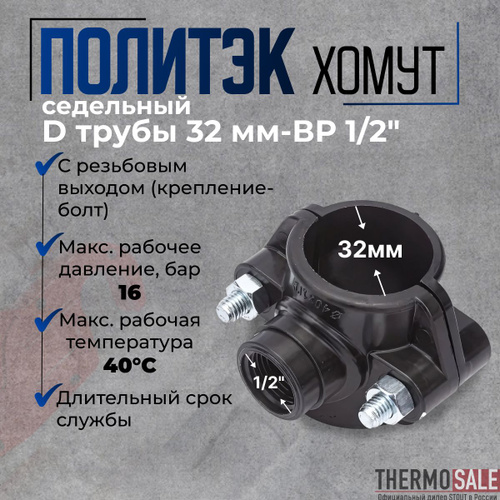 Седелка на трубу 32 хомут седельный ПНД ( врезка в трубу ) ВР 1/2 с резьбовым выходом (крепление - болт) Политэк