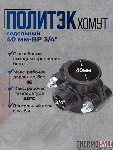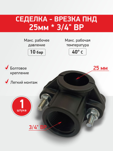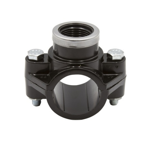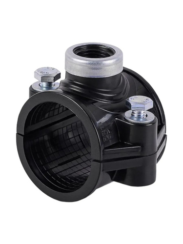 Седелка на трубу 40 хомут седельный ПНД ( врезка в трубу ) ВР 3/4 с резьбовым выходом (крепление - болт) Политэк