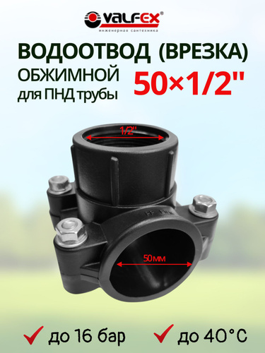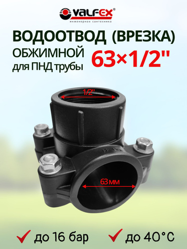 Врезка водоотвод для ПНД трубы 63х1/2" VALFEX