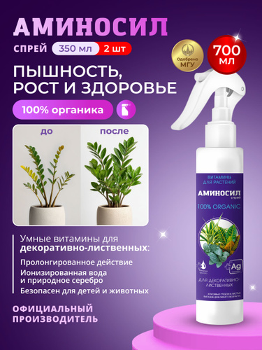 Витамины для декоративно-лиственных Аминосил, спрей 2 шт по 350 мл (700 мл) / Удобрение для монстеры, фикуса, пальм, драцены, замиокулькаса, для комнатных растений