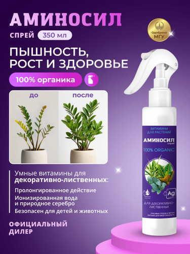 Витамины для декоративно-лиственных Аминосил, спрей 350 мл / Удобрение для монстеры, фикуса, пальм, драцены, замиокулькаса, для комнатных растений