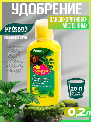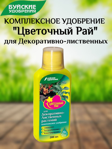 Жидкое Комплексное Удобрение "Цветочный рай" для Декоративно-лиственных комнатных и садовых растений 0,2л