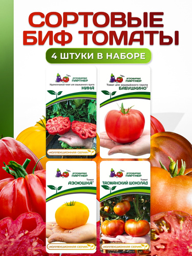 Набор семян: Сортовые биф томаты - Бабушкино; Азоюшка; Тасманский шоколад; Нина