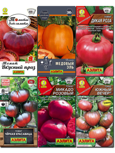 Лучшие и любимые биф-томаты! ТОП-6 сортов! Набор из 6 пачек! Больше 100 семян! Только крупные мясистые плоды!