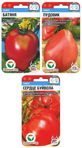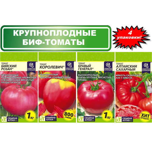 Набор крупноплодных биф томатов (4 упаковки): Бийский розан, Королевич, Бравый генерал, Алтайский сахарный (Семена Алтая)