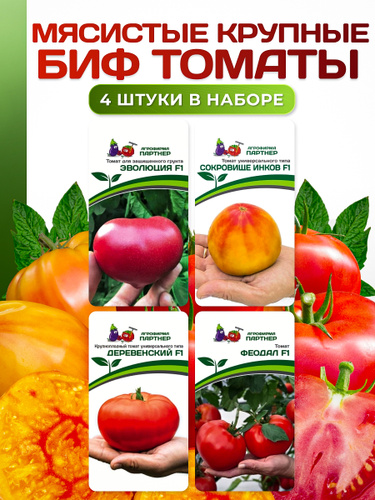 Набор семян: Мясистые крупные биф томаты - Деревенский; Сокровище инков; Феодал; Эволюция