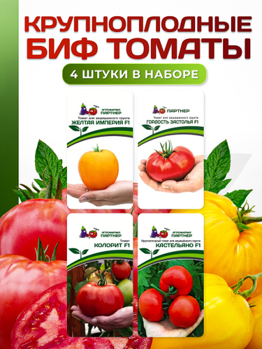 Набор семян: Крупноплодные биф томаты - Гордость застолья; Колорит; Кастельяно; Желтая империя