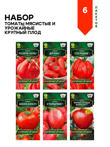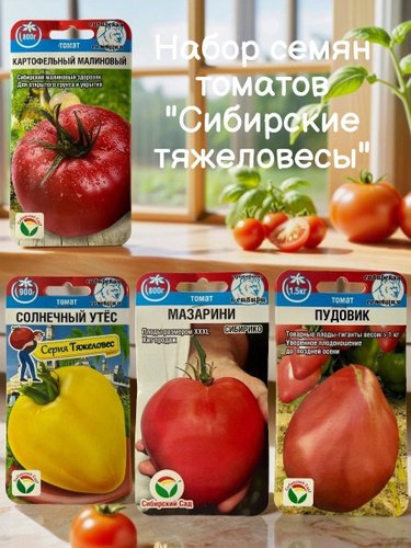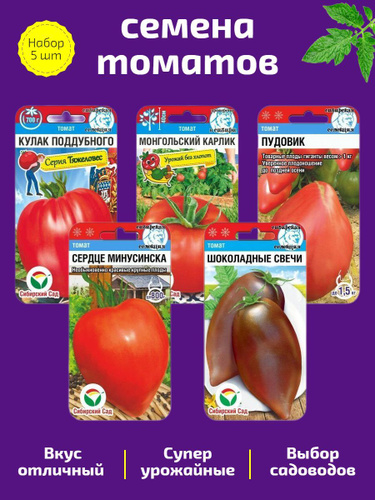Томат Сердце Минусинска, Шоколадные Свечи, Кулак Поддубного, Монгольский Карлик, Пудовик. Набор семян томатов с отличными сортовыми характеристиками от компании Сибирский Сад.