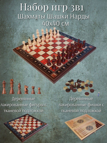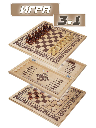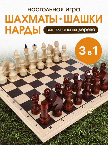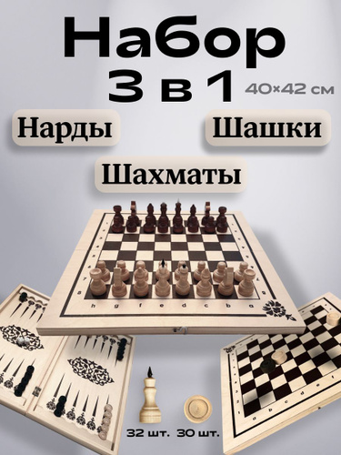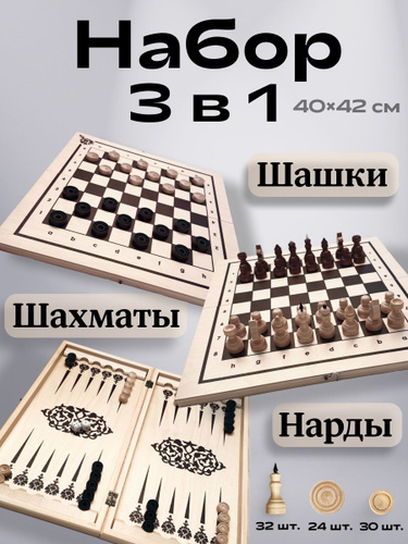 Шахматы деревянные, шашки, нарды - набор 3 в 1