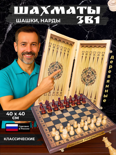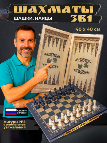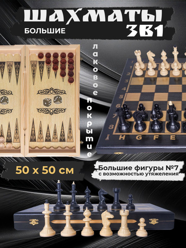 Нарды деревянные большие 60х60, 3в1 с шахматами и шашками - КАМЧАТКА