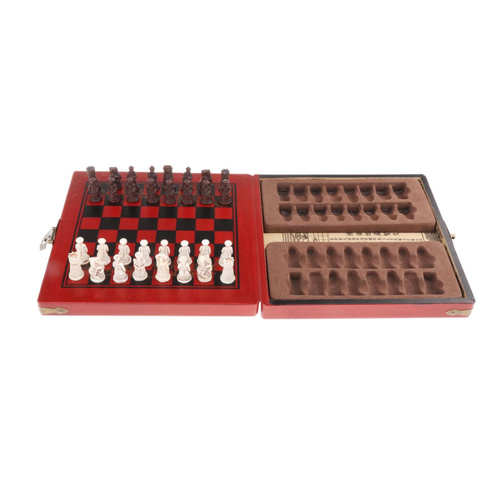 Антикварные международные терракотовые шахматы Деревянная складная шахматная доска