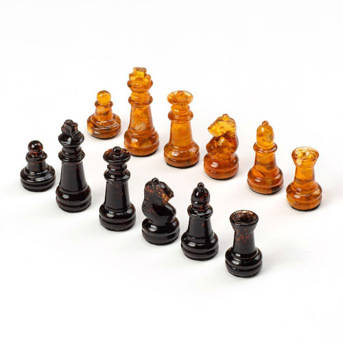 Шахматы антикварного стиля с кожаной доской и фигурками из полимерной смолы