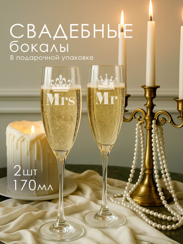 Свадебные бокалы под шампанское с гравировкой Мистер миссис 2026