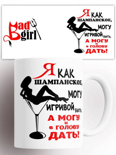 Кружка "Приколы женские с надписью про шампанское", 330 мл, 1 шт