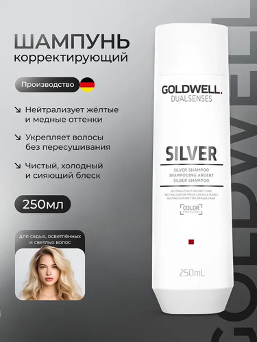 Goldwell Dualsenses Silver Shampoo Корректирующий шампунь для седых и светлых волос, 250 мл