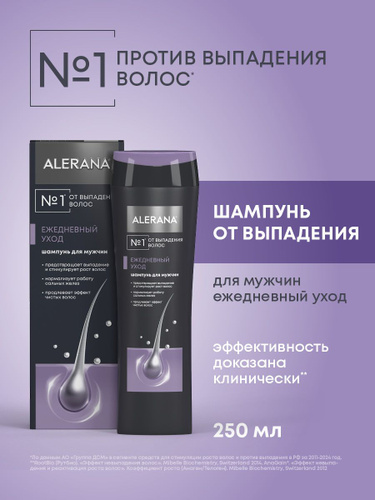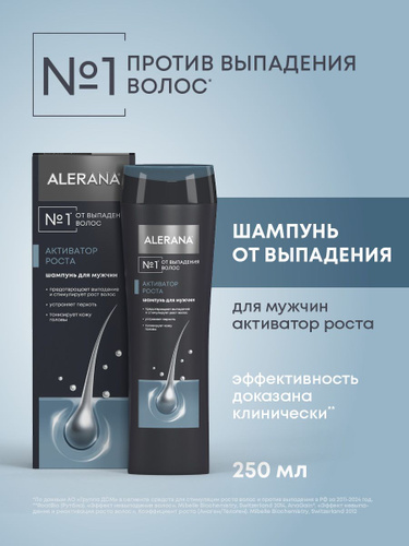 Шампунь ALERANA для мужчин, для роста и против выпадения волос, для мужских волос, 250мл