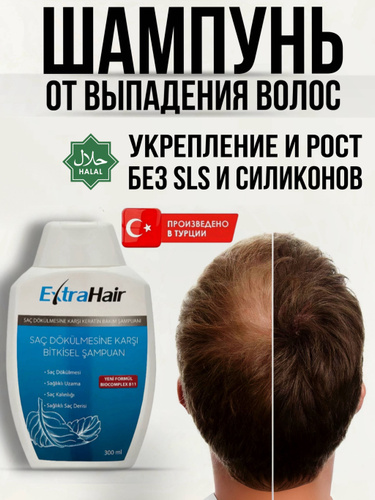 Шампунь кератиновый против выпадения волос для роста парфюмированный от перхоти ExtraHair турецкий без SLS