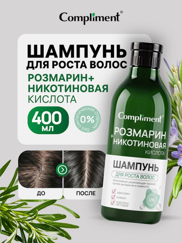 Compliment Шампунь для роста волос с розмарином и никотиновой кислотой, 400мл