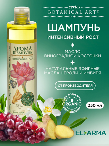 Botanical Art, Шампунь для роста волос Интенсивный рост с натуральными эфирными маслами имбиря, нероли, виноградной косточки, 350 мл