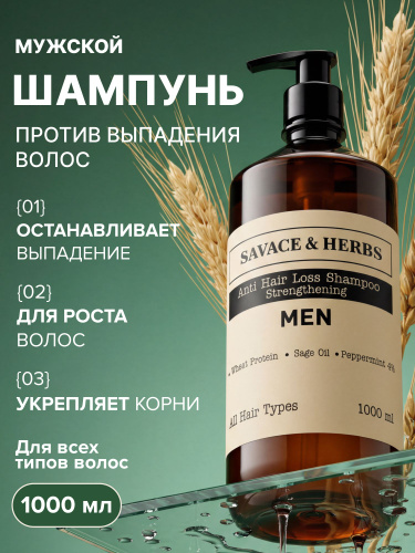 Чистая Линия Шампунь мужской для волос, для роста и укрепления, перечная мята и кофеин, 1000 мл