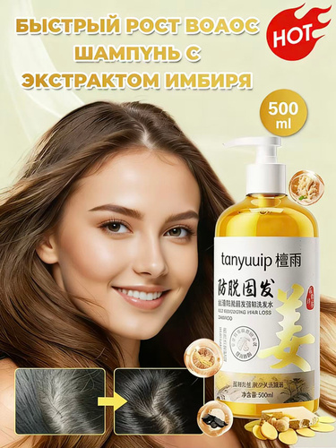 Шампунь против выпадения, увеличивает рост волос, перхоть, с экстрактом женьшеня и имбирь, для всех типов волос, 500 мл