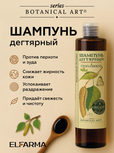 Шампунь от перхоти дегтярный, Botanical Art/ с натуральным березовым дегтем, против выпадения волос 350