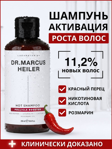 DR. MARCUS HEILER Шампунь для роста волос, красный перец + никотиновая кислота + кератин, разогревающий / от выпадения волос у женщин, мужчин, 250 мл
