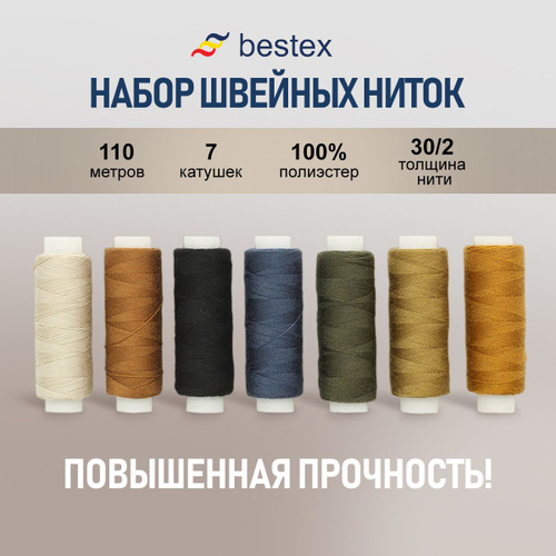 Нитки для шитья набор 30/2, 110 м, ассорти, 7 шт, Bestex
