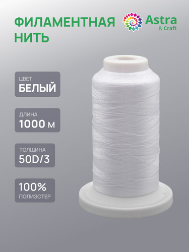 Нитки для шитья филаментные 50D/3, 1000 м, 100% п/э, Astra&Craft
