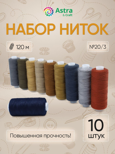 Нитки для шитья особопрочные 20/3, 120 м, 10 шт, Astra&Craft
