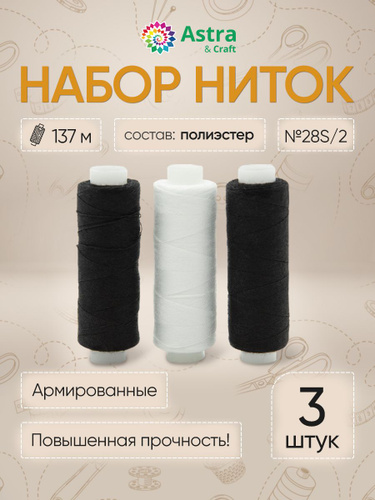 Нитки для шитья, армированные 28S/2, 150 ярд, 3 шт, Зебра, Astra&Craft