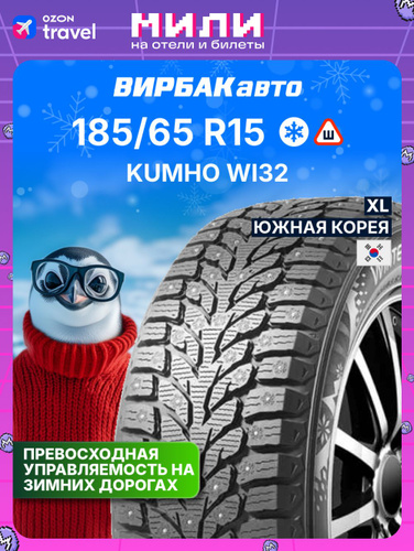 Kumho WinterCraft Ice WI32 Шины зимние 185/65 R15 92T Шипованные