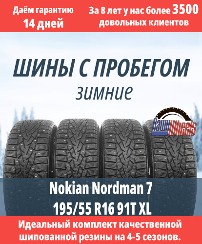 Nokian Tyres Nordman 7 Шины с пробегом зимние 195/55 R16 91T Шипованные