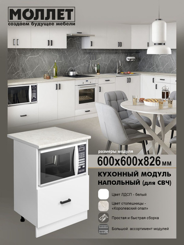Кухонный модуль напольный 60 см под микроволновку, ЛДСП, со столешницей