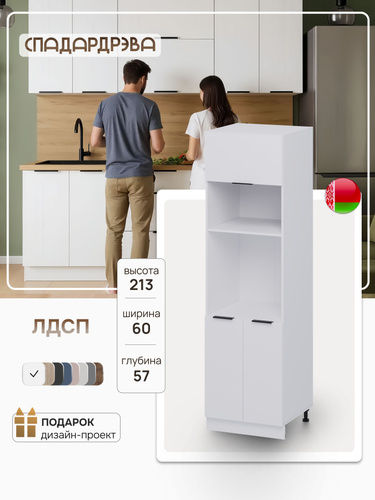 Кухонный модуль напольный 60х213х57 см шкаф-пенал для кухни, ЛДСП, Сканди Белый, СпадарДрэва