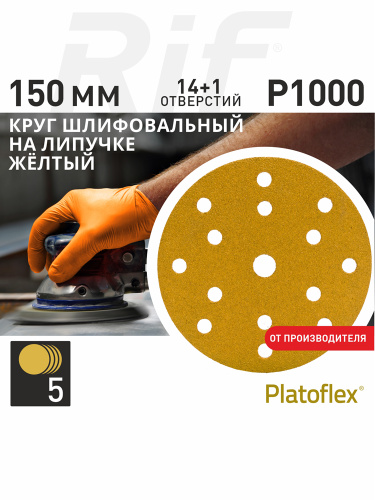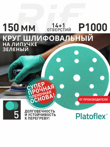 Круг шлифовальный 150мм Р1000 15 отв. на липучке RIF Platoflex Зеленый 5шт.