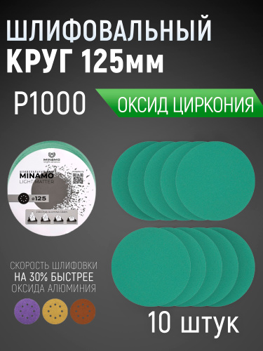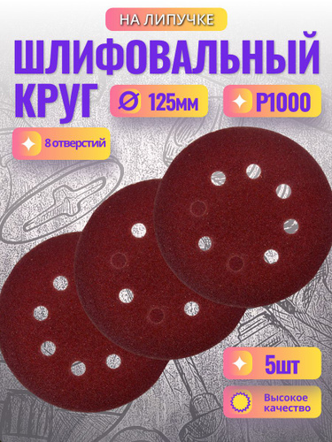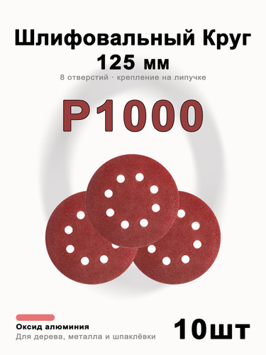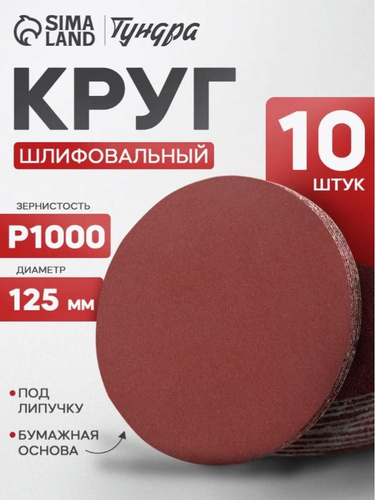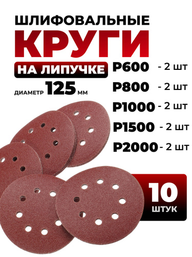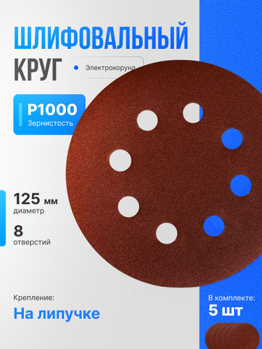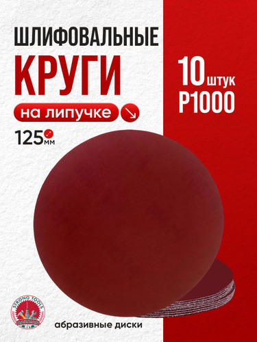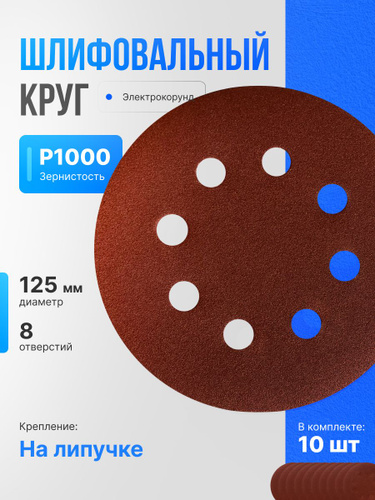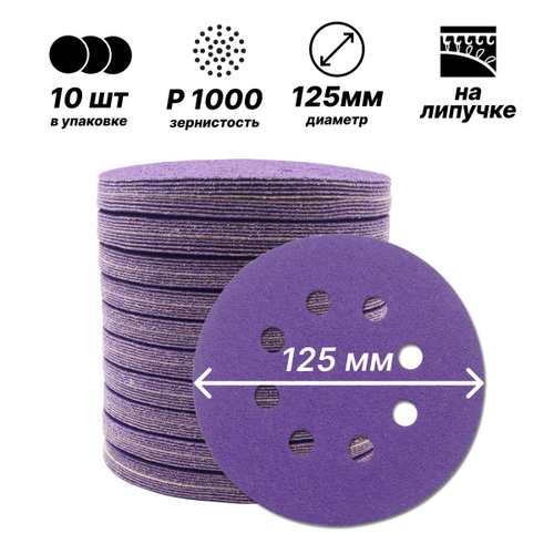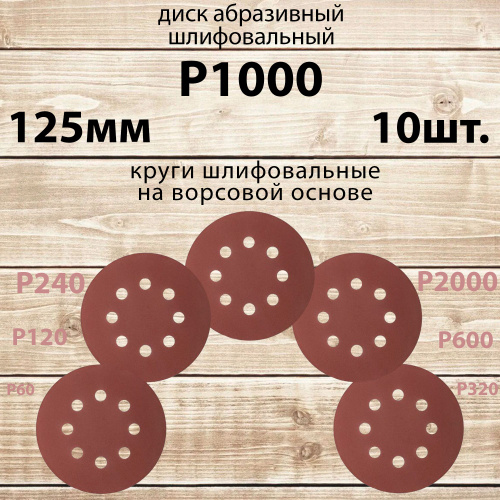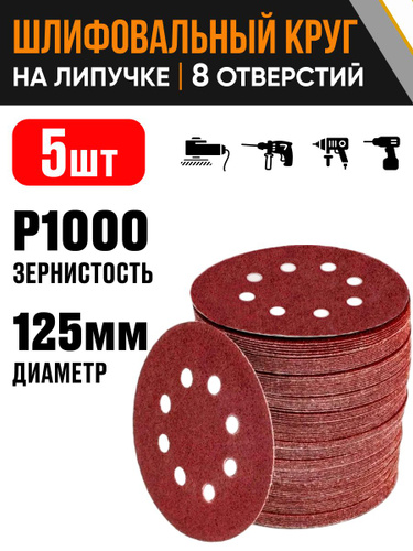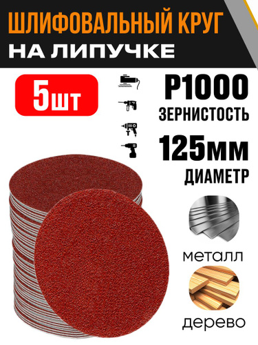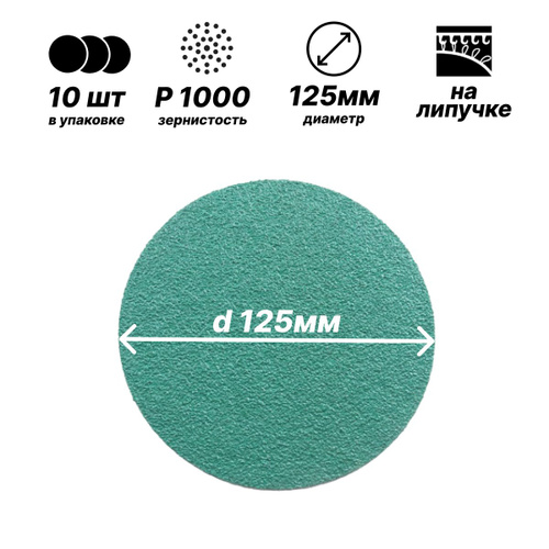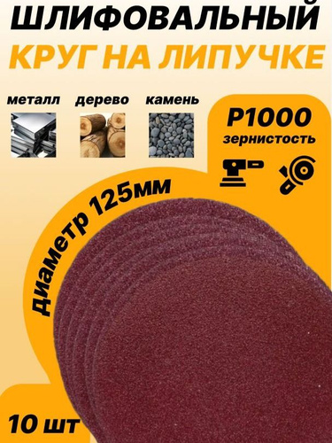 Круг шлифовальный 125 мм на липучке, P1000 (10 штук), диск шлифовальный на ворсовой основе /диск абразивный