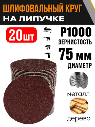 Круг шлифовальный 75 мм Р1000 20 шт диск на липучке без отверстий