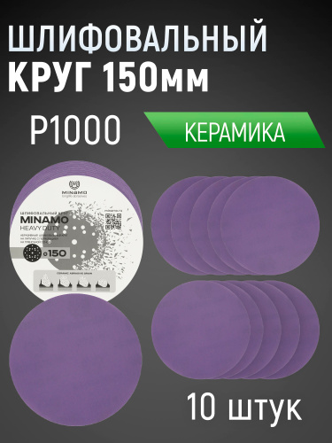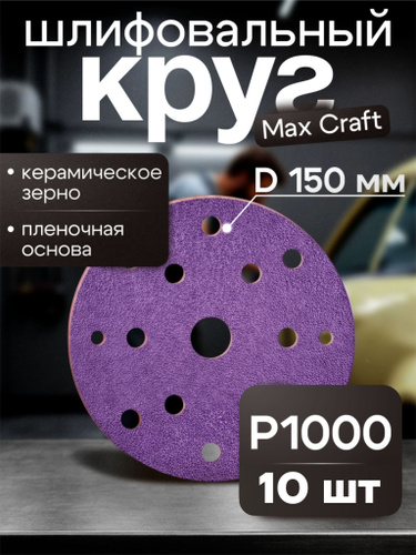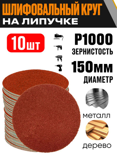 Круг шлифовальный 150 мм Р1000 10 шт диск на липучке без отверстий