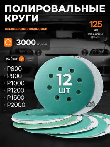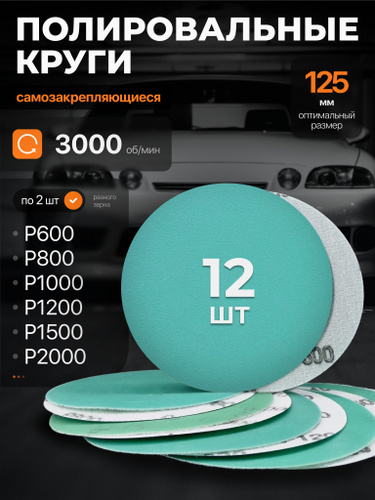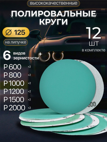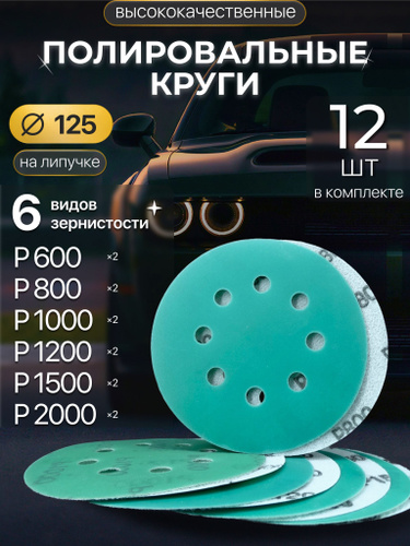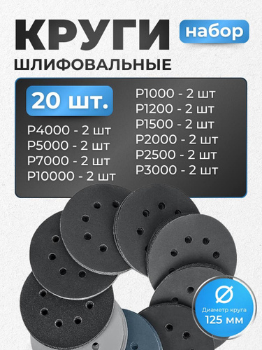 Круг шлифовальный, Диск шлифовальный на липучке 125 мм, Р1000 Р1200 Р1500 Р2000 Р2500 Р3000 Р4000 Р5000 Р7000 Р10000 по 2 шт,20 шт. Водостойкая.