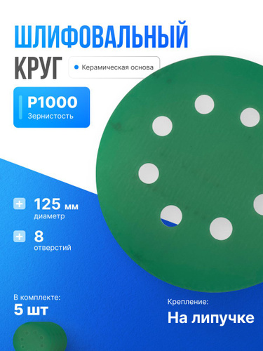 Шлифовальный круг с керамическим зерном на плёночной основе под липучку 8 отв. 125мм Р1000 (уп. 10 шт.)