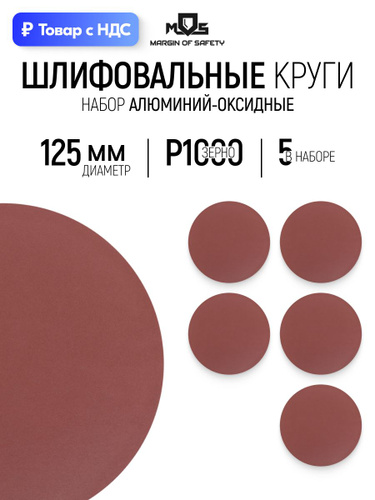 Круги шлифовальные 125 мм на липучке Р 1000 абразивные сплошные набор 5 шт