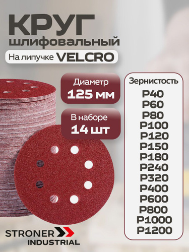 Круг шлифовальный на липучке 125 мм набор 14шт, Р40-1200