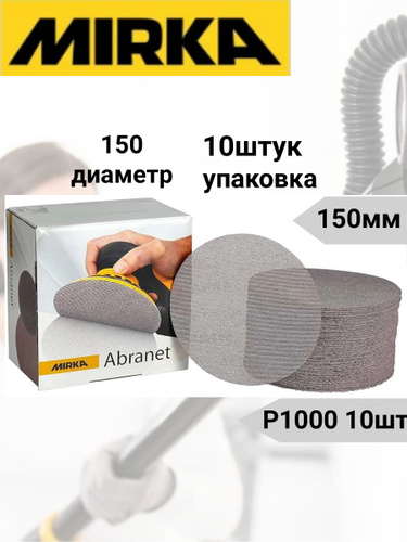 Шлифовальные круги на липучке сетка P-1000. Mirka Abranet,диаметр 150мм, 10 штук.