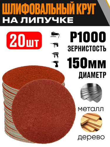 Круг шлифовальный 150 мм Р1000 20 шт диск на липучке без отверстий